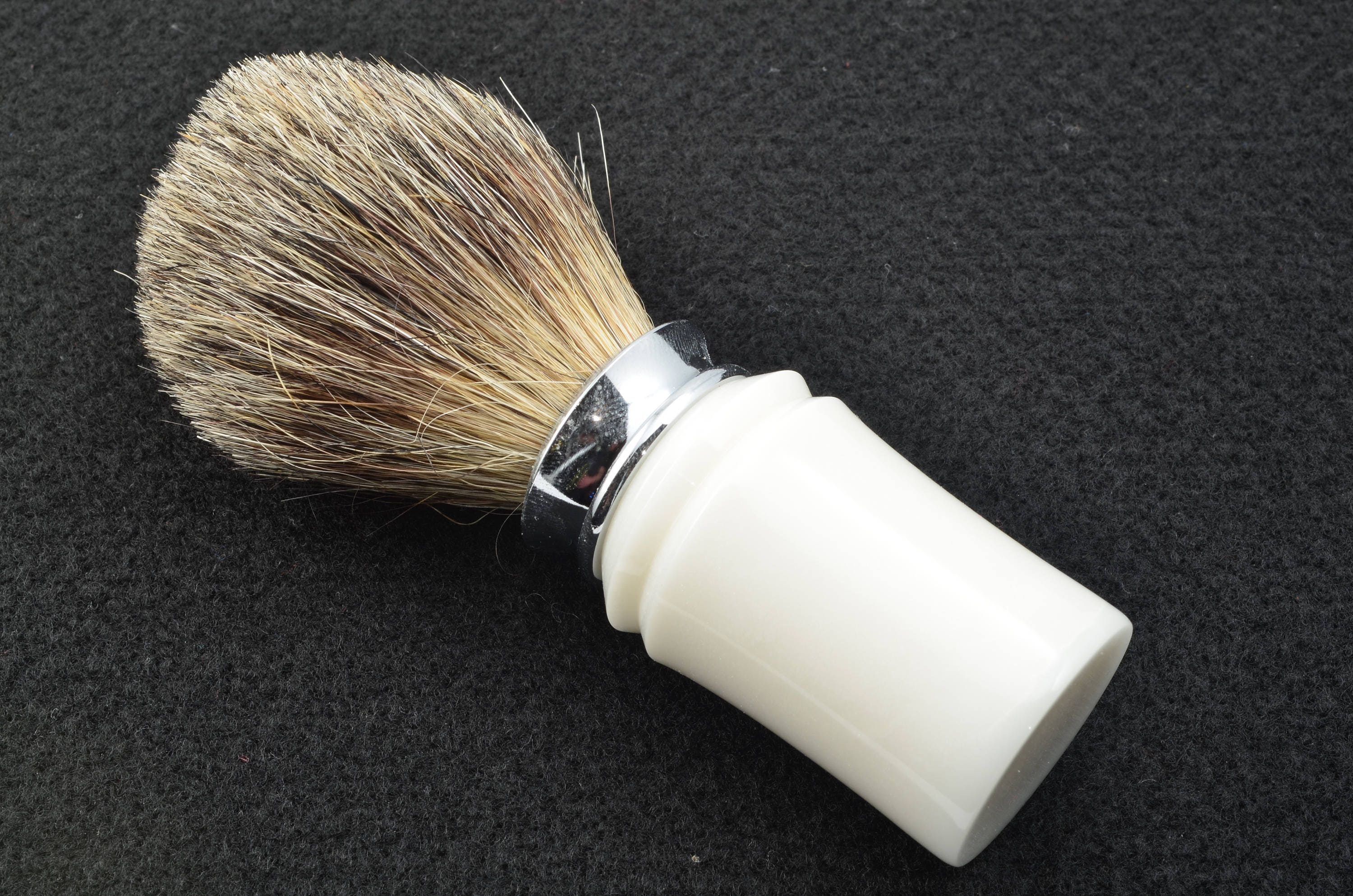 This three piece shaving set, is the epitome of class. The brush consists of premium badger hair, and the pearl white acrylic handle makes it a knockout. The double edge safety razor is having a resurgence in popularity, based on the superior shaving experience. To hold it all together in a nice, neat, and beautiful package, is the razor and brush stand, in gunmetal, it has a subdued, brooding aesthetic, that is hard to look away from.